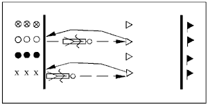 команде, бегут рядом с барьерами. Передача