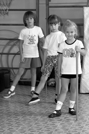 Оборудование: подушки, кегли, гири, клюшки, мячи.