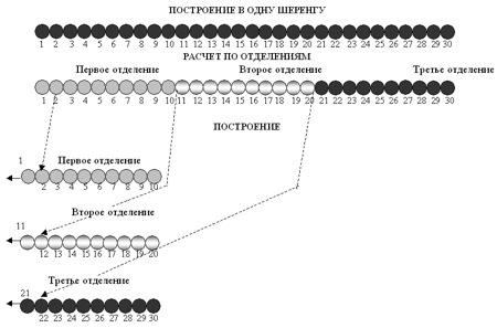Рис. 2. Перестроение из одной шеренги в четыре