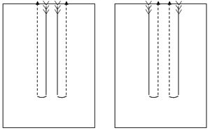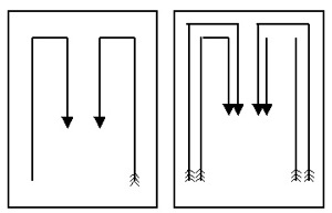 При построении открытой петли направление движения в конце противохода изменяется в противоположном направлении: например, если противоход выполняется направо, то направление передвижения изменяется налево.
