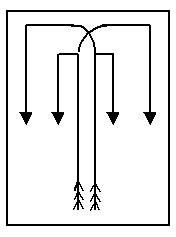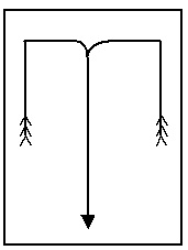 1. Средняя открытая петля в продольном направлении из верхней середины. Подается команда: «Средней открытой петлей – марш!». Исполнительная команда подается в тот момент, когда направляющий находится в верхней середине. Направляющий и за ним колонна идут налево к центру, дойдя до него – противоходом направо до верхней середины и налево в обход.