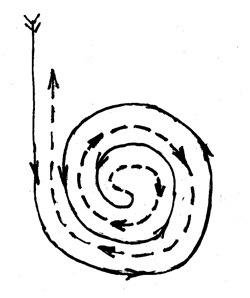 4. Спираль – передвижение по кругу с постепенным уменьшением радиуса до центра и выходом в противоположном направлении противоходом (рис. 26).